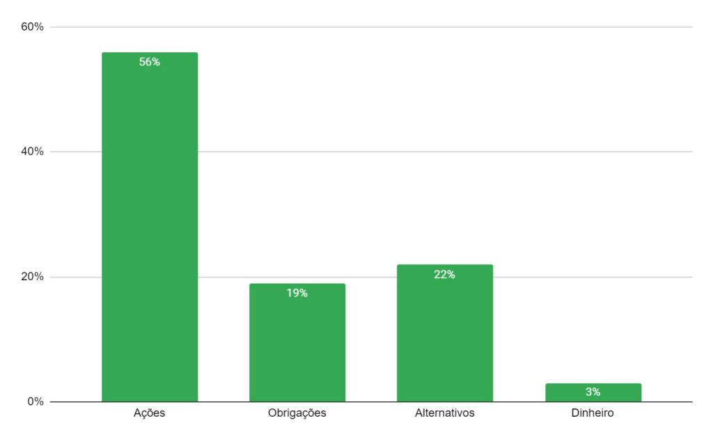 A Morgan Stanley, por exemplo recomenda aos seus clientes a inclusão de pelo menos 20% de ativos alternativos, nos quais se pode incluir o Bitcoin. O gráfico abaixo é um exemplo de uma recomendação de diversificação desta empresa.