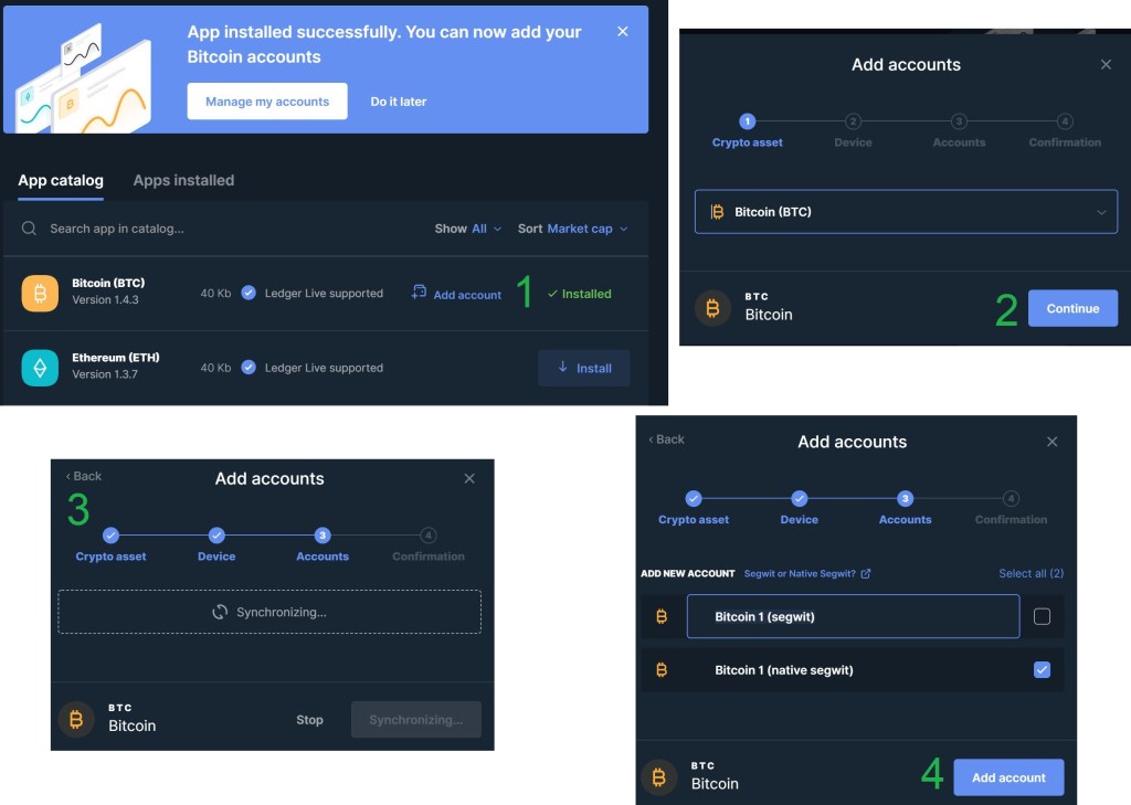 Para finalizar, falta criar uma conta que será o teu endereço Bitcoin. Com a conta criada, ficas então com a tua Nano S pronta para receber as bitcoins que possuis, para que as protejas e guardes da forma mais segura.