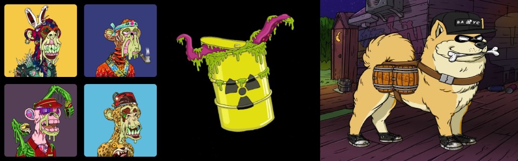 E mais! Para que os macacos não ficassem tão aborrecidos a equipa arranjou-lhes companhia e criou o Bored Ape Kennel Club (BAKC – Clube Canino dos Macacos Aborrecidos). Um companheiro canino que foi dado a cada proprietário de um macaco para lhe fazer companhia. Aproveitando uma parte dos fundos angariados para doar a canis e apoiar a adopção de cães. Além disso, criaram os Mutant Ape Yacht Club (MAYC – Clube de Iate dos Macacos Mutantes). Se os Apes originais eram 10 000, estes são cerca de 20 000 para trazer mais pessoas para o clube ainda que num nível inferior. Mas os proprietários dos Apes originais podem usar umas poções para os transformar em Mutantes! A equipa foi criando uma série de dinâmicas originais e muito interessantes para promover o uso, a utilidade e o interesse dos tokens que foi criando.